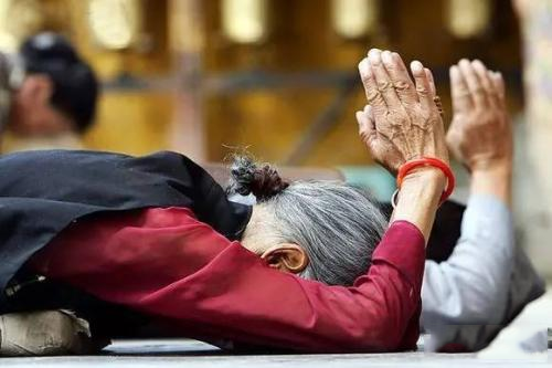 五体投地的顶礼,一方面表示你决心放下傲慢和成见,把自己摆在最低的位置,坦然接受一切,不再担心摔跤和失去;另一方面也能积累巨大的福德资粮。佛经中说,佛陀三十二种宝相之一的无见顶相,便是因恭敬顶礼具德上师而来。